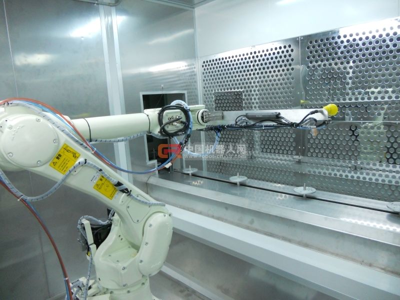 整線共用了十一臺川崎機器人,一臺RS20N用于在線除塵,五臺川崎RS20N用于搬運,五臺川崎KF121六軸防爆多關節(jié)型用于涂裝。川崎RS20N機器人配合Y型轉臺自動搬送---機器人/自動移載。搬運到線體對面噴房內由川崎KF121六軸多關節(jié)型涂裝機器人進行噴涂。完成后川崎RS20N機器人配合Y型轉臺自動搬送---機器人/自動移載回到整線鏈條輸送線上。