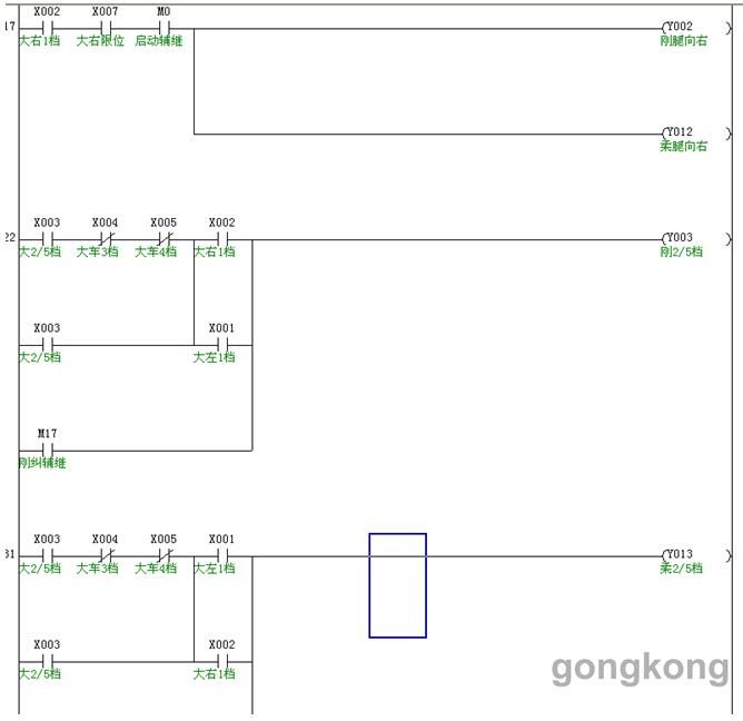 根據(jù)系統(tǒng)的控制要求,確定系統(tǒng)所需的全部輸入設(shè)備:大車啟動接觸器反饋、大車運行左中繼、大車運行右中繼、極限開關(guān)、變頻器反饋(故障、零速、力矩)和電動機熱繼電器等;輸出設(shè)備:中繼、信號指示燈。有PLC有關(guān)的輸入/輸出設(shè)備,以確定PLC的I/O點數(shù)。并留有10%-20%余量。