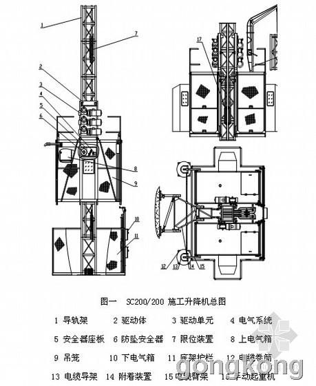1、施工升降機的組成:施工升降機主要組成部分如下:導軌架、吊籠、傳動系統、附墻架、底架護欄、電氣系統、安全保護裝置、電纜供電裝置等。如圖所示: