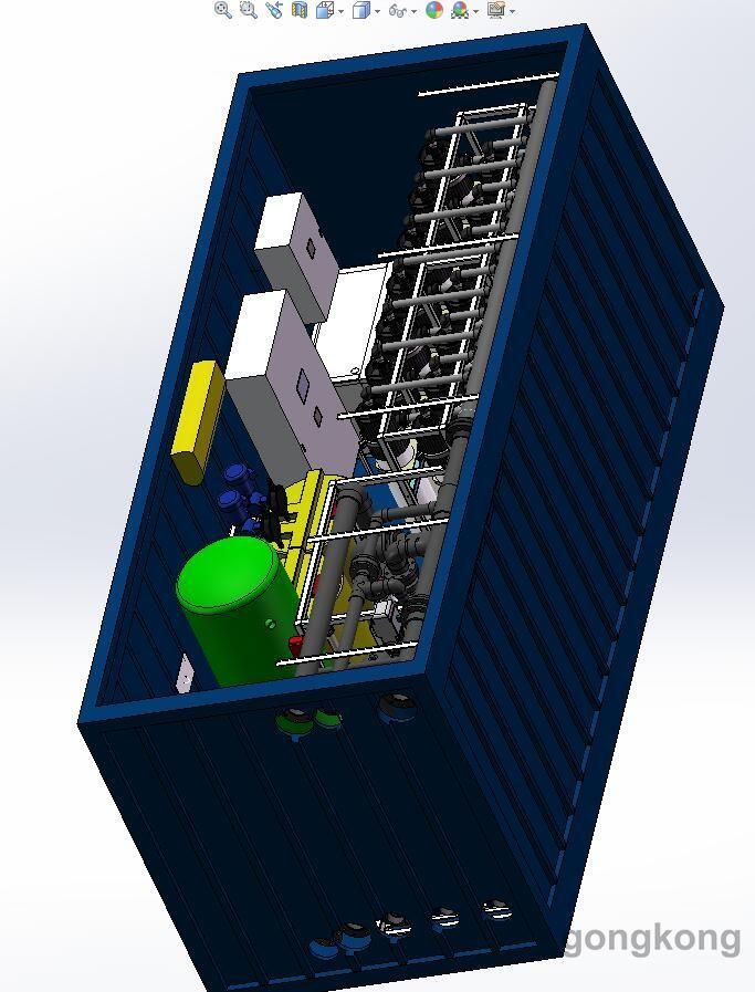 今天筆者給大家呈現的不是什么大的水處理工程,而僅僅是一套水處理設備。設備使用方為馬來西亞,戶外使用,采用的是集裝箱式的超濾系統。整個系統的外觀如下圖。