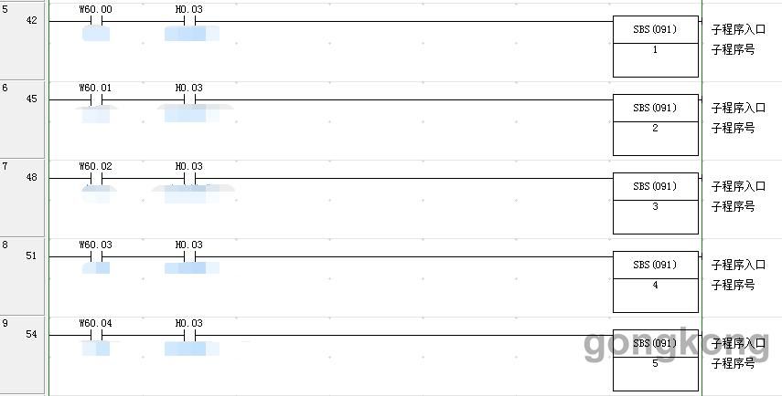 由于工藝原因決定了設備需要分16個流程進行,正好對于咱16進制的數據,因此采用123…..CDF的步驟分別進行子程序的調用。正常工作流程為1-2-3-4-5-1,循環進行,當達到設定的要求后,啟動6-F的工作流程,對應的子程序被調用。程序框架如下。