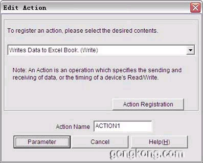 點擊Action List在右邊空白處取得動作列表,在列表空白處點擊右鍵選擇Register Action進入Edit Action界面。點擊下拉菜單選擇您要進行的動作,此處我們以寫數據到Excel文檔為例。選中后點選Action Registration按鈕,選擇Excel的執行程序。