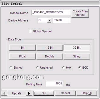 正確選擇Data Type和Device Address后點擊Create from Address將自動生成Symbol Name,雖然Symbol Name是可以修改的,但我們建議您使用自動生成的名稱,這個名稱是保證正確且不重復的。