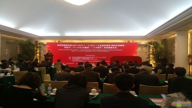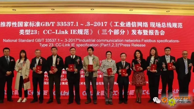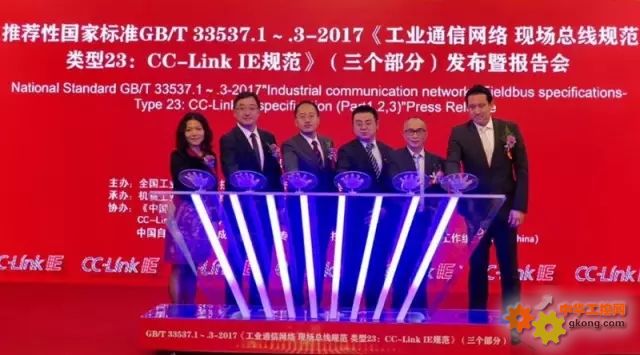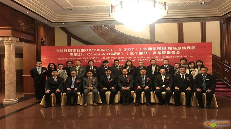 2017年4月19日,在風景秀美、靜謐而莊重的北京釣魚臺國賓館,推薦性國家標準GB/T 33537.1~.3-2017《工業通信網絡 現場總線規范 類型23:CC-Link IE規范》正式發布。標志著,CC-Link IE 正式成為中國工業通信網絡推薦性國家標準!