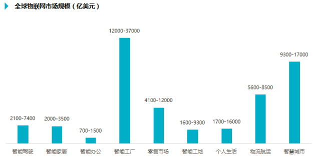 圖1. 麥肯錫預(yù)測2025年全球物聯(lián)網(wǎng)市場規(guī)模可達(dá)3.9-11.1萬億美元