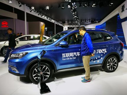 圖為獲工博會工業(yè)設(shè)計(jì)金獎(jiǎng)的榮威RX5互聯(lián)網(wǎng)汽車。