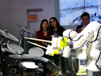 圖為會打擊樂的機(jī)器人。