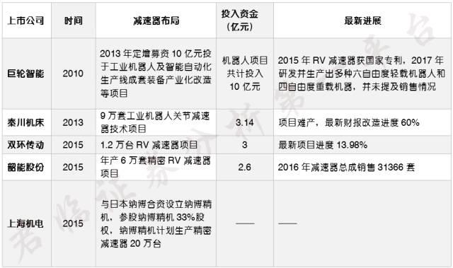 近來,一些本土企業(yè)已經(jīng)向這個(gè)領(lǐng)域艱難進(jìn)發(fā),以下是部分上市公司在減速器方面的布局: