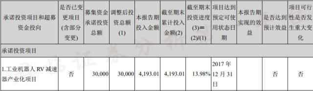 在2016年的年報(bào)中,9萬(wàn)套工業(yè)機(jī)器人關(guān)節(jié)減速器改造項(xiàng)目完成進(jìn)度,僅有60%。