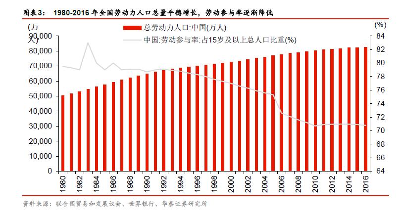 隨著中國人口總數步入了平穩增長期,勞動力人口也正在經歷拐點。華泰證券認為,2015年是中國勞動力人口的拐點。此后的十年,每年適齡勞動力人口可能較少1000萬左右。